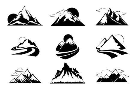 様々 な山アイコンの白黒コレクションのイラスト素材 ベクタ Image